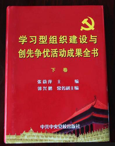 《學(xué)習(xí)型組織建設(shè)與創(chuàng)先爭(zhēng)優(yōu)活動(dòng)成果全書》是由全國思想政治工作科學(xué)專業(yè)委員會(huì)編撰的大型文獻(xiàn),分上、下兩卷,約400萬字,已于今年年初由中共中央黨校出版社正式出版。該書主要收錄對(duì)學(xué)習(xí)型組織建設(shè)與創(chuàng)先爭(zhēng)優(yōu)活動(dòng)作出新的理論概括,對(duì)黨建科學(xué)化水平的實(shí)踐經(jīng)驗(yàn)、調(diào)查研究、工作心得作出歸納概括的論文佳作。(消息來源:王輝)